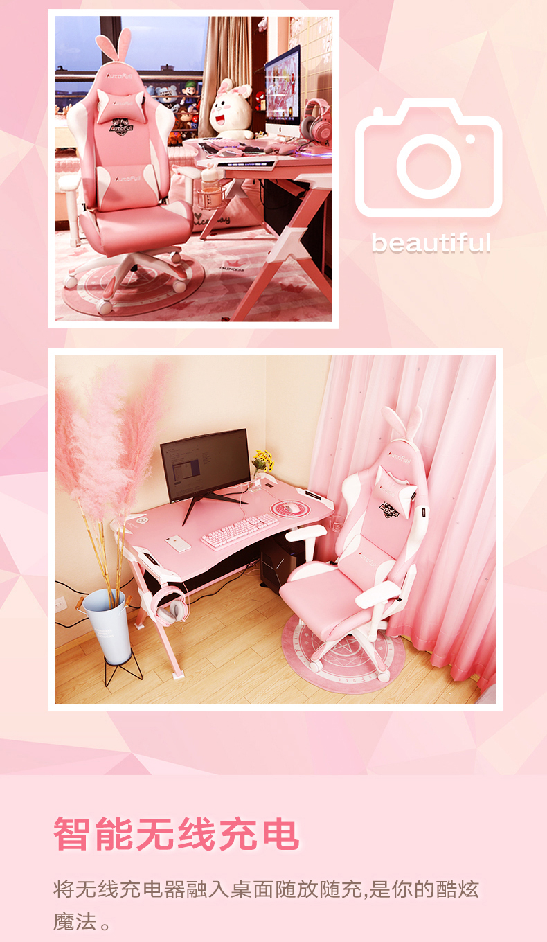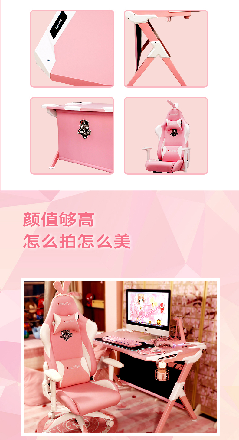 商品名称:傲风 AutoFull 电竞桌 电脑桌 粉色台式家用办公桌子
