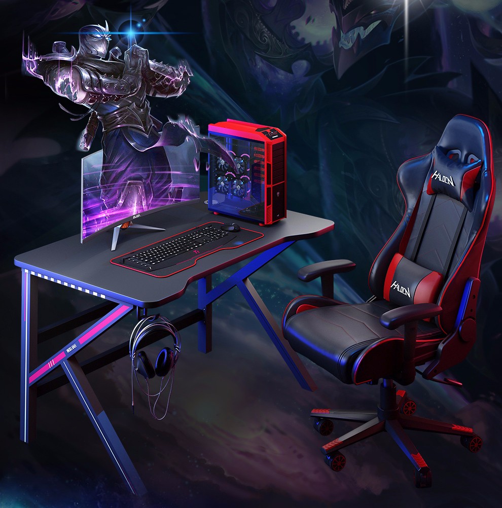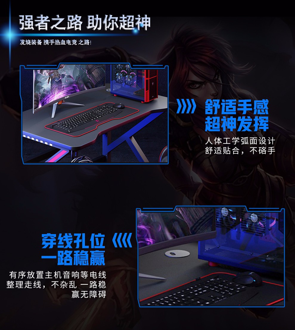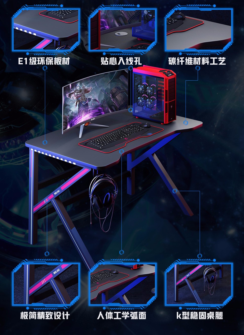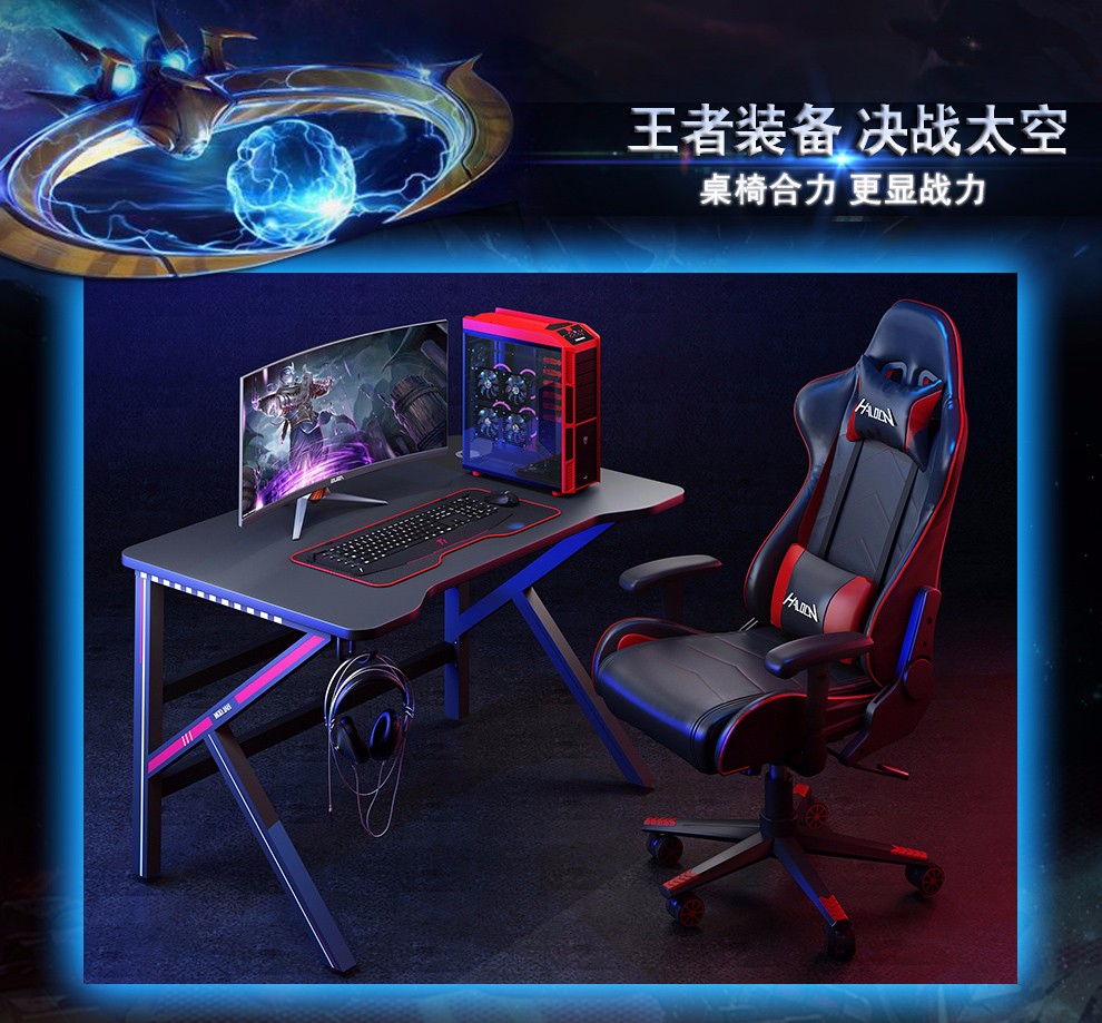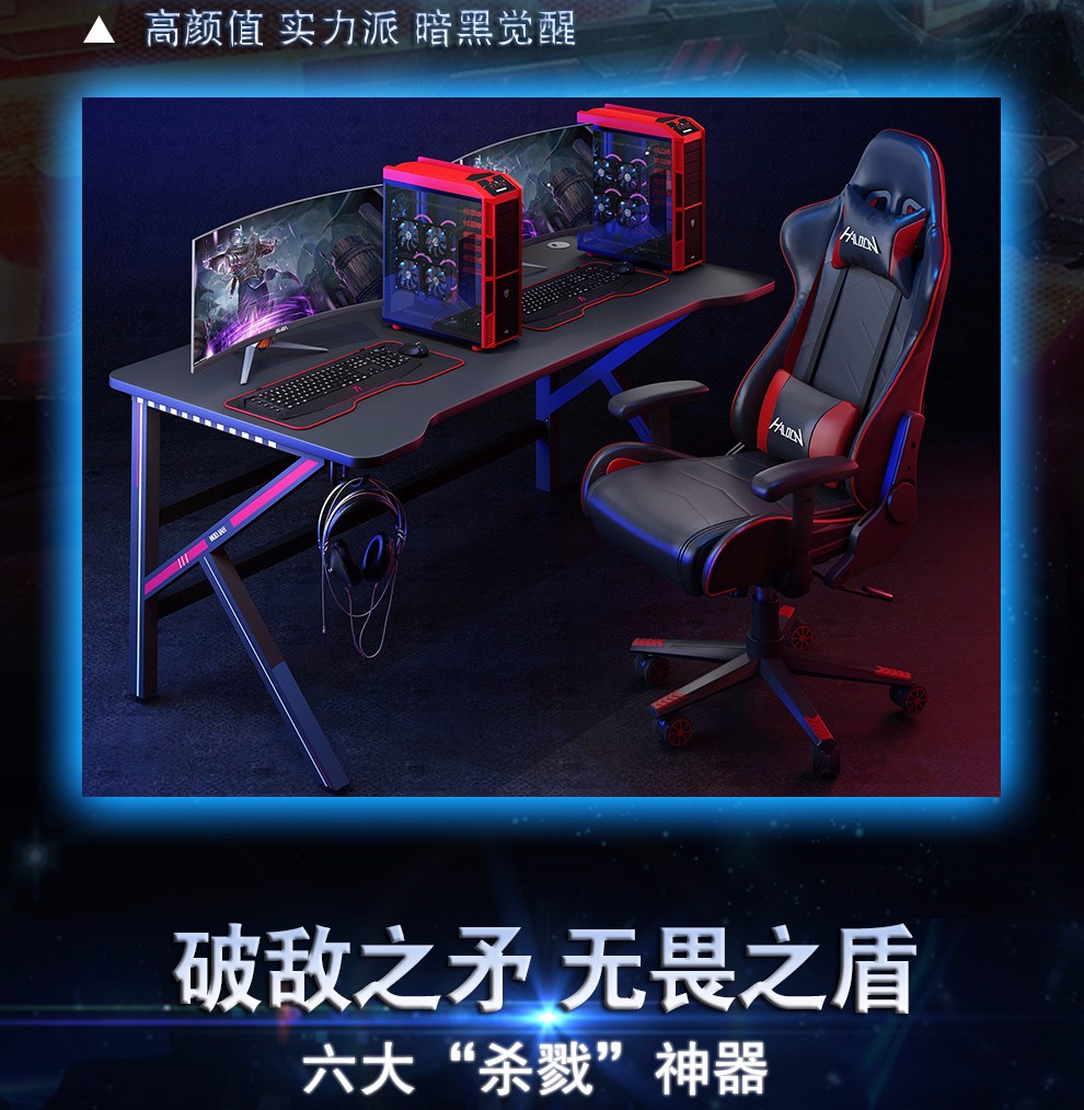 商品名称:哈骆顿(HALODN)电竞桌 网吧电脑桌游戏桌电脑桌台式家用电竞桌超大椅套装电竞椅游戏椅子 单桌 暗黑觉醒(140*60*75)