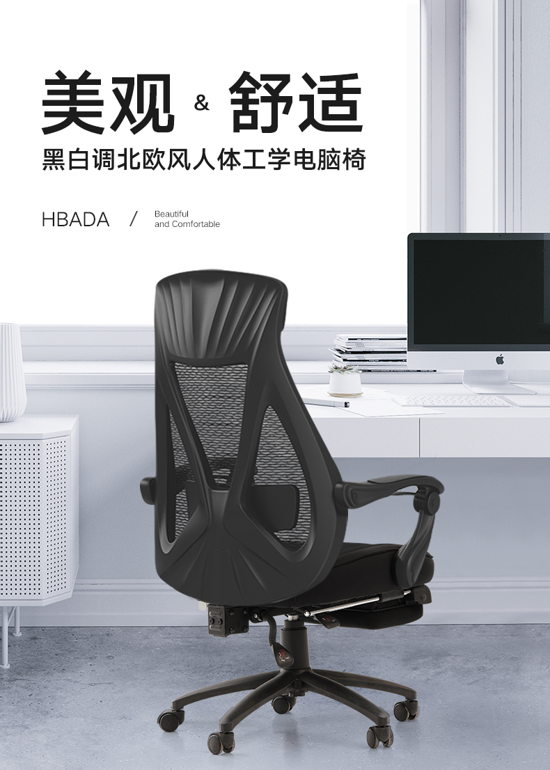 商品名称:黑白调(Hbada)电脑椅家用 办公椅子 电竞椅 可躺椅转椅 人体工学椅 老板椅黑色077BSJ