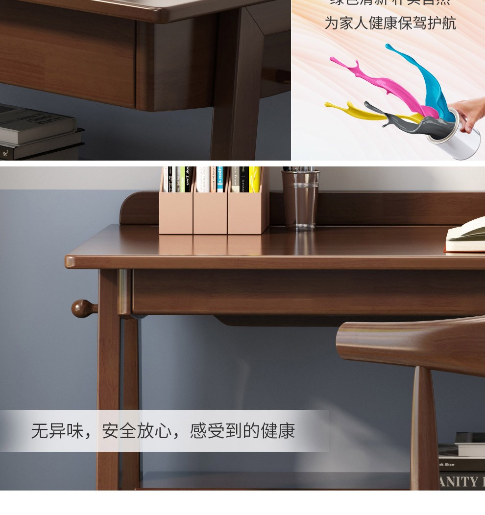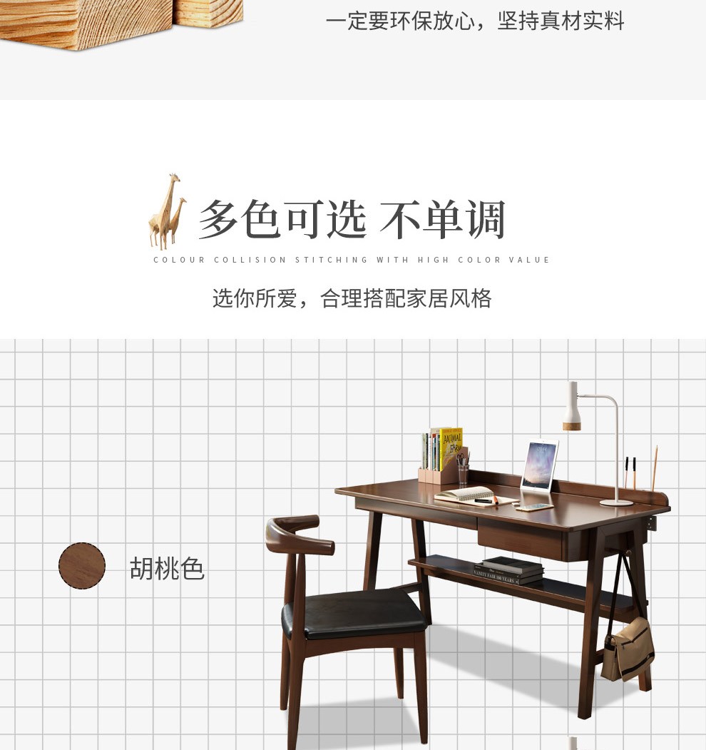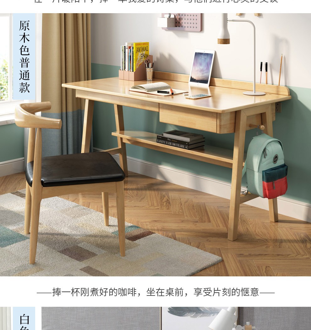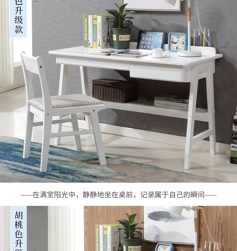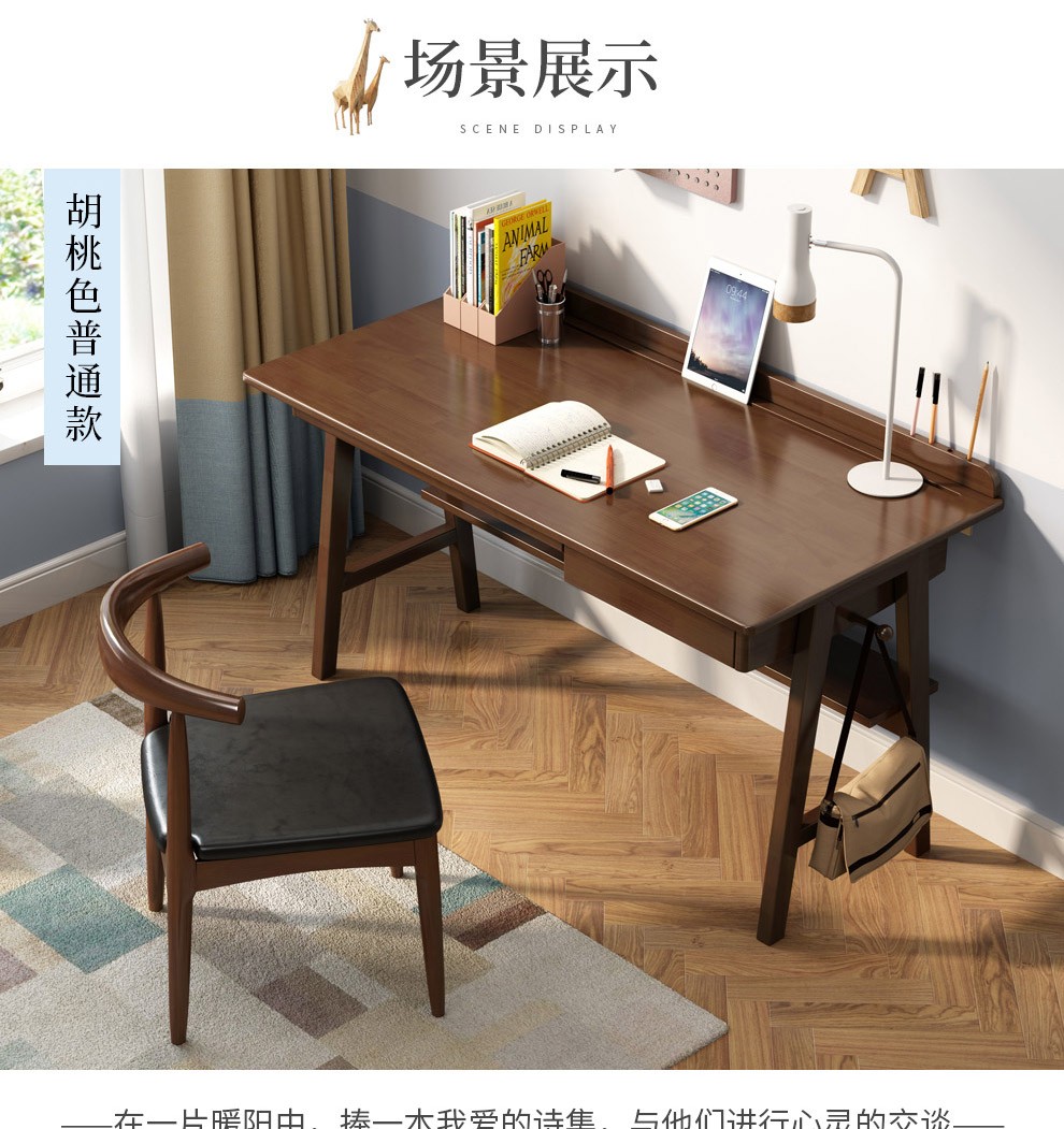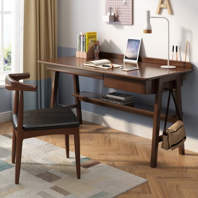 商品名称:风之意 北欧实木书桌家用小户型办公桌带抽屉写字台现代简约台式笔记本电脑桌SZ0013 胡桃色-普通版 1.2m 桌子
