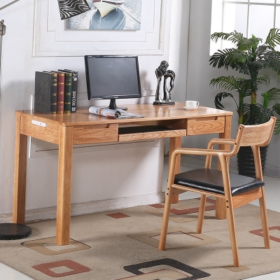 风之意 实木电脑桌北欧简约现代书房家具家用写字台书桌 1902榉木色 1米桌子+椅子