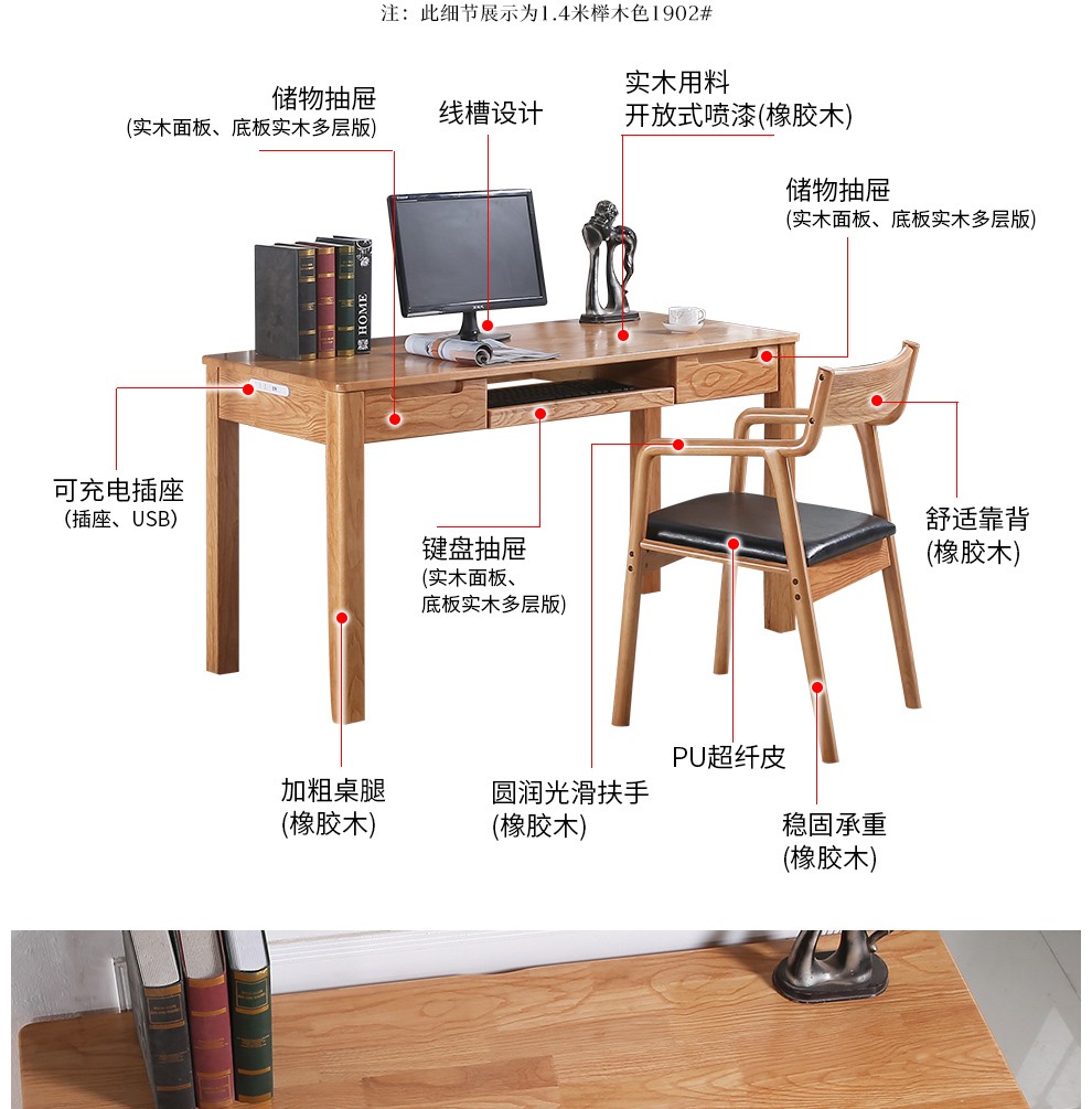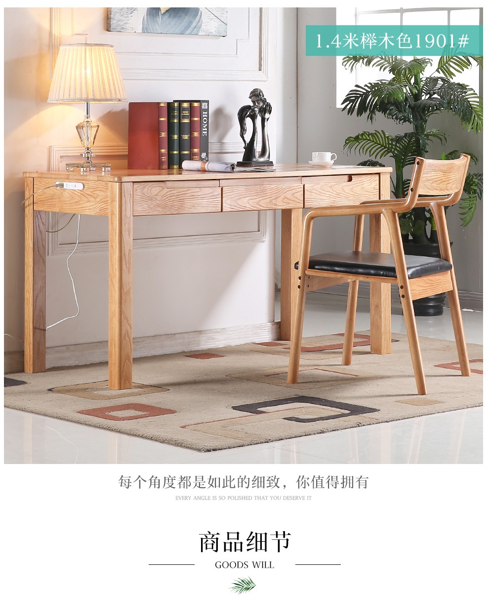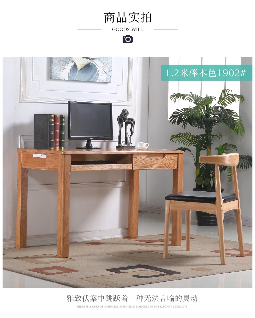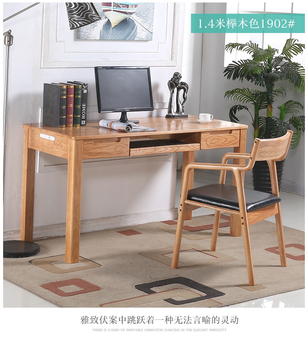 商品名称:风之意 实木电脑桌北欧简约现代书房家具家用写字台书桌 1902榉木色 1米桌子+椅子