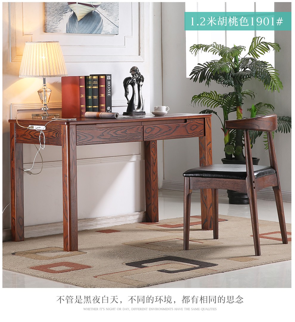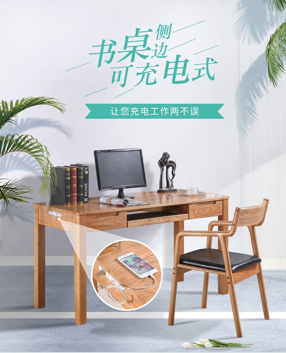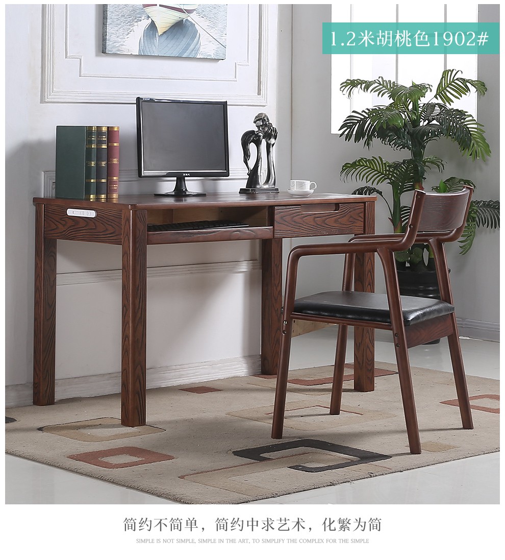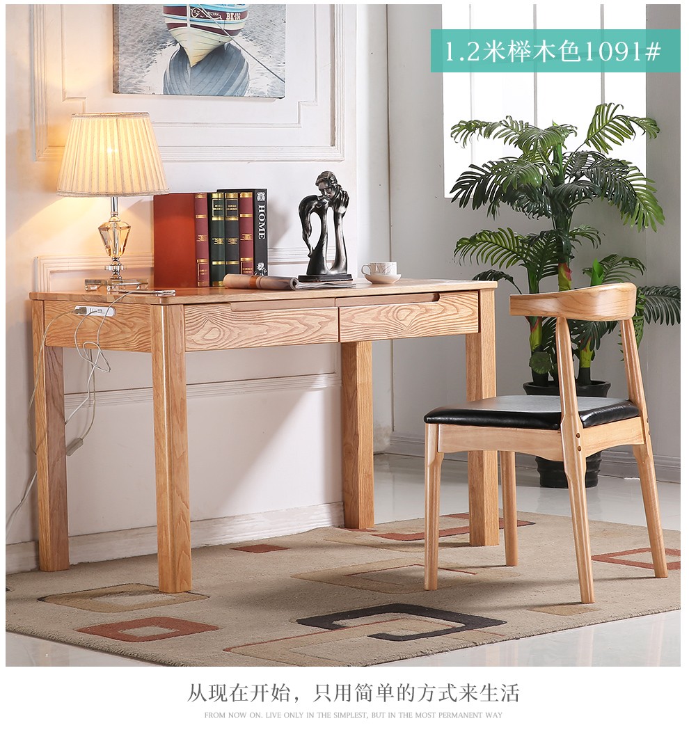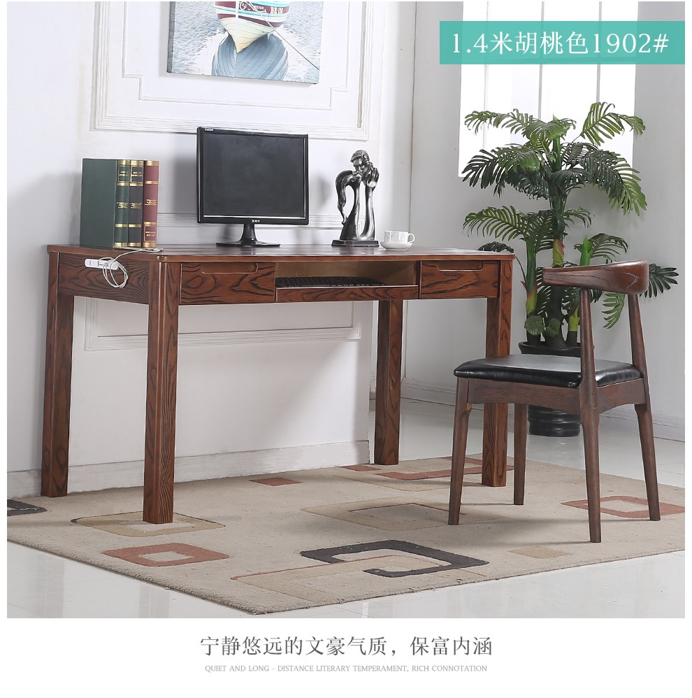 商品名称:风之意 实木电脑桌北欧简约现代书房家具家用写字台书桌 1902榉木色 1米桌子+椅子