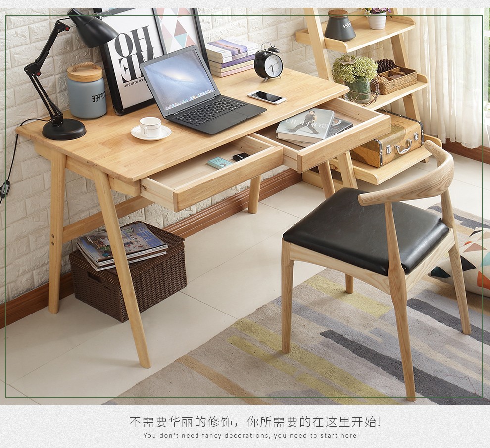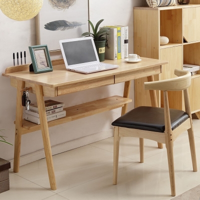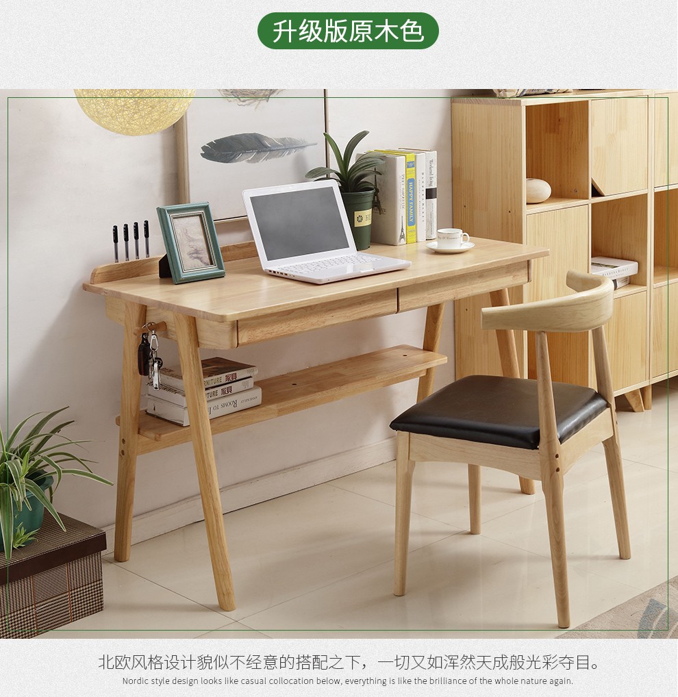 商品名称:风之意 实木书桌儿童书桌北欧日式办公桌小户型写字台家用带抽屉学习桌 原木色(升级版) 1.2m 书桌(双抽屉)