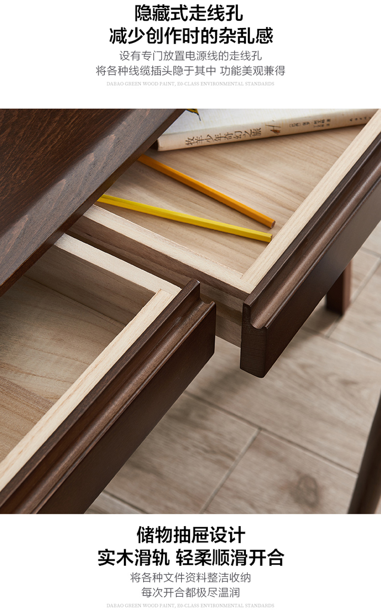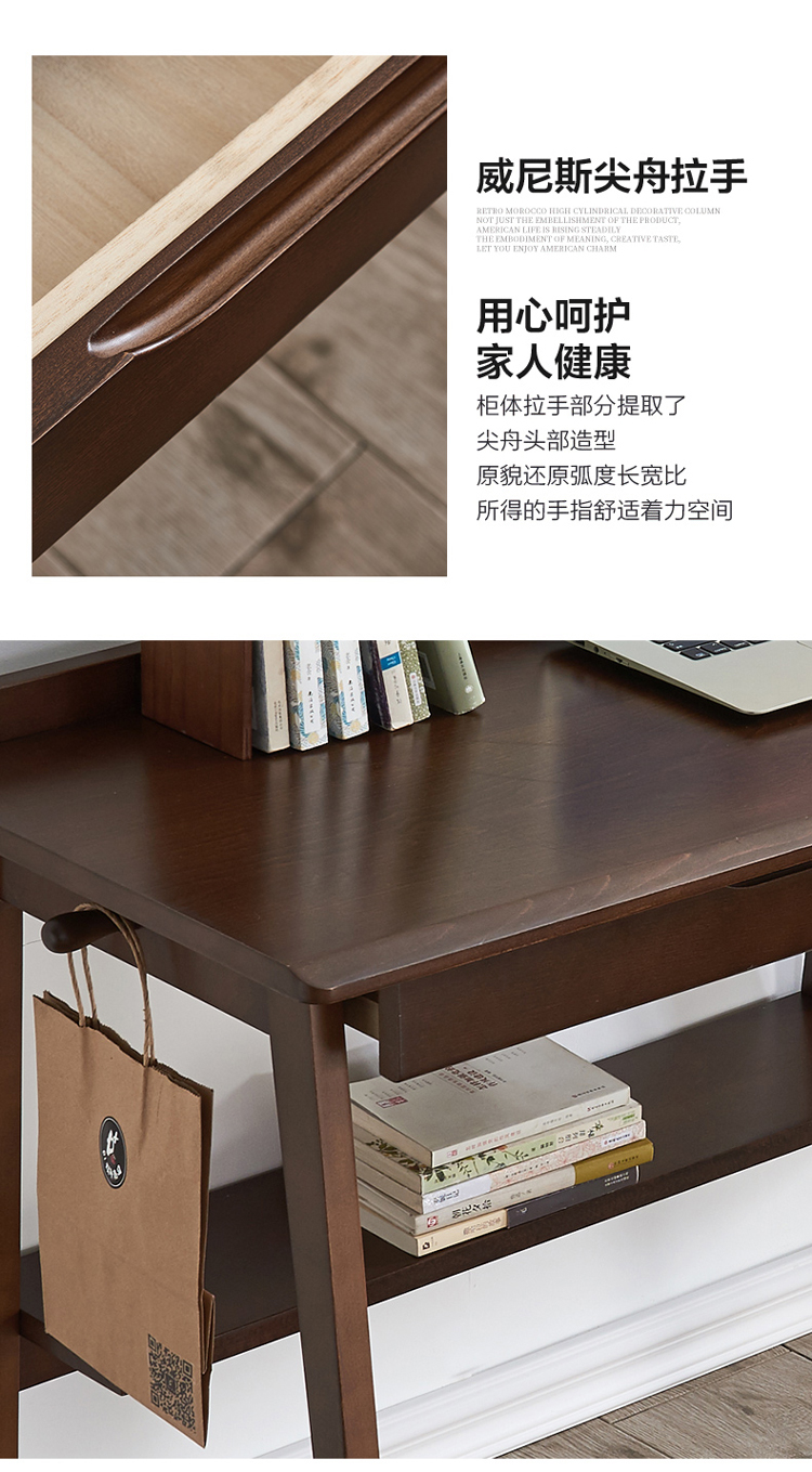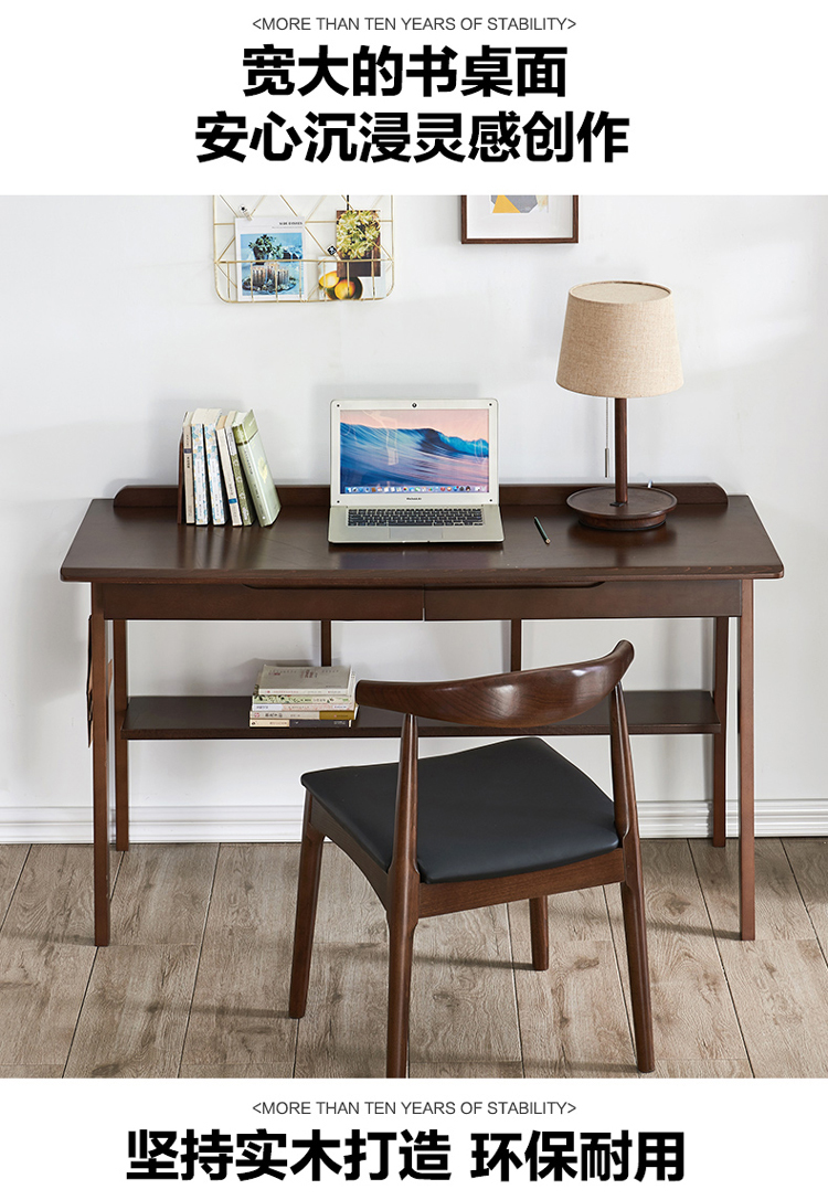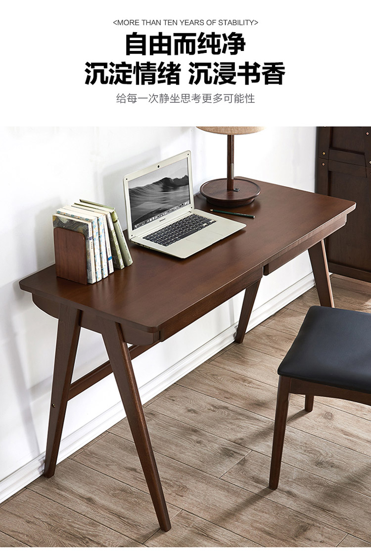 家逸 电脑桌实木 简约办公桌 书房写字台书桌 1.2米原木色