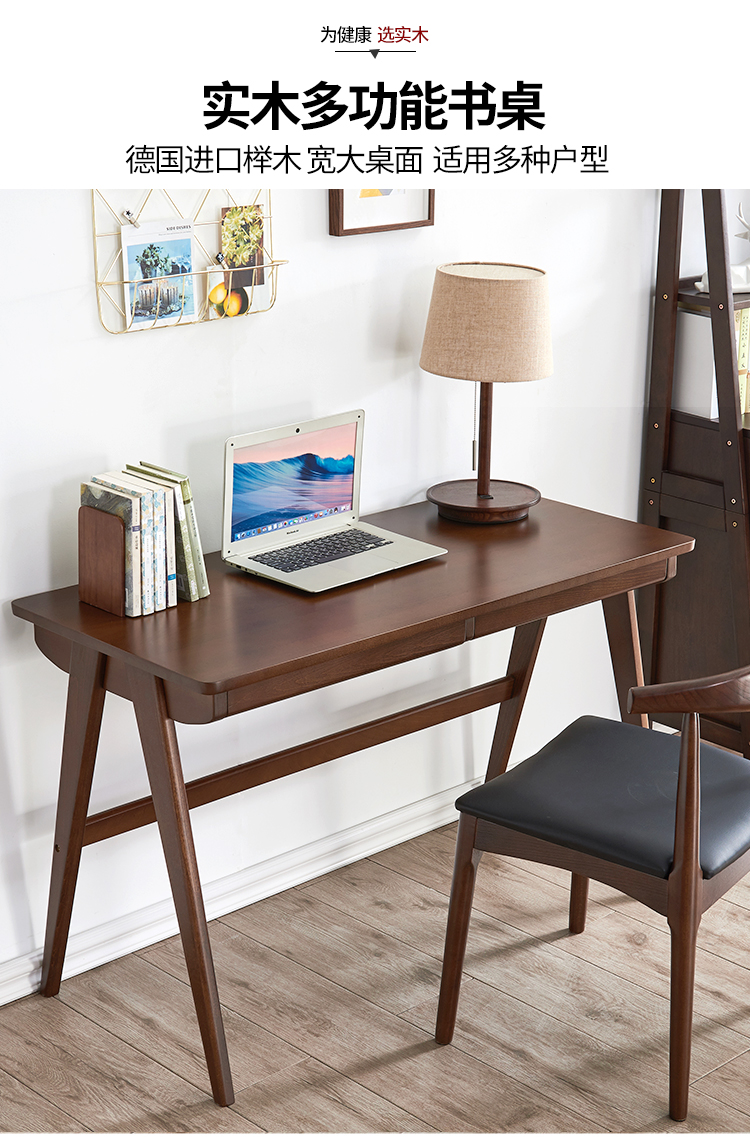 商品名称:家逸 电脑桌实木 简约办公桌 书房写字台书桌 1.2米原木色