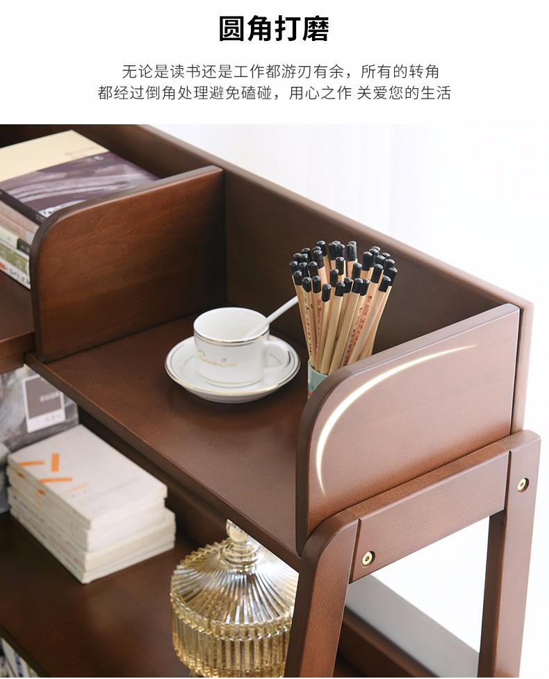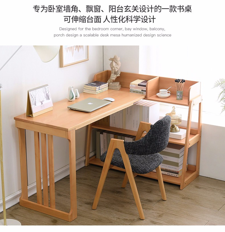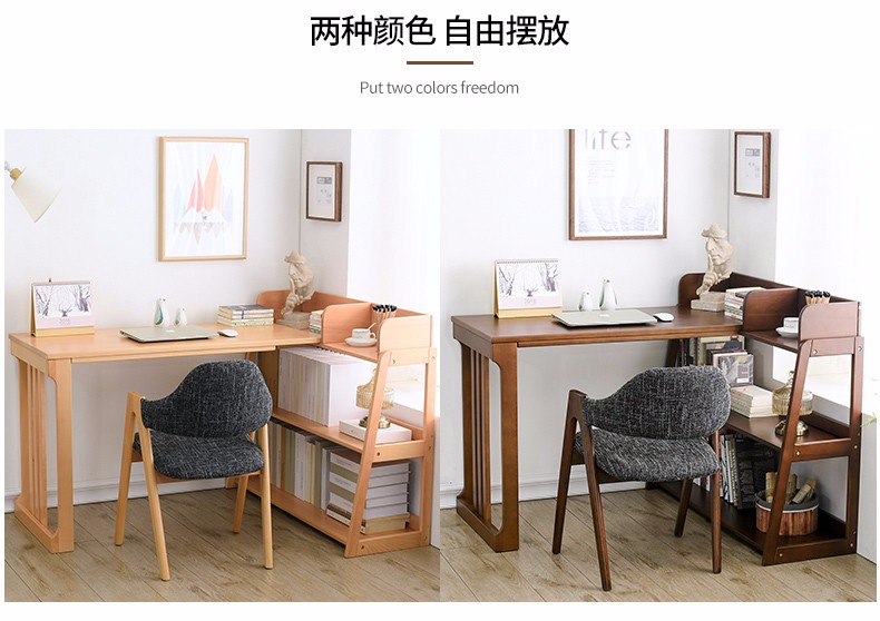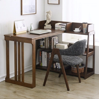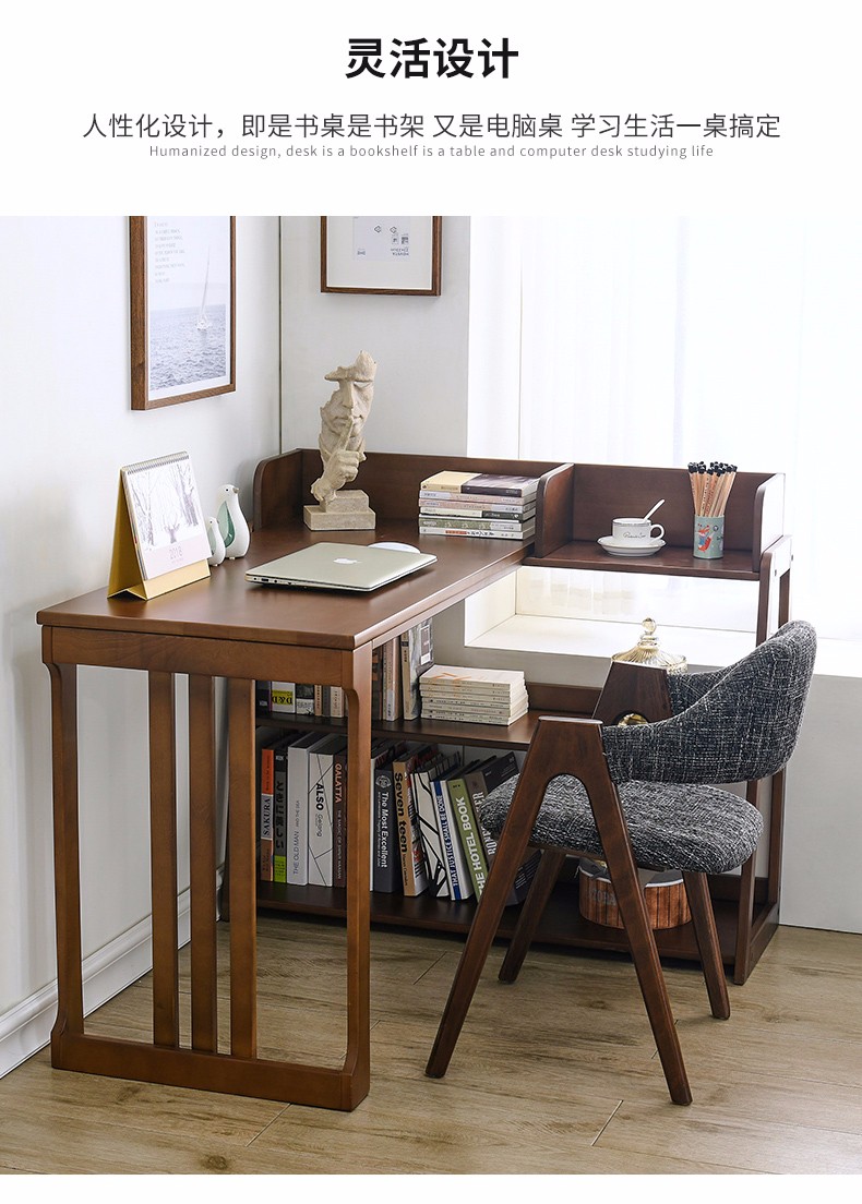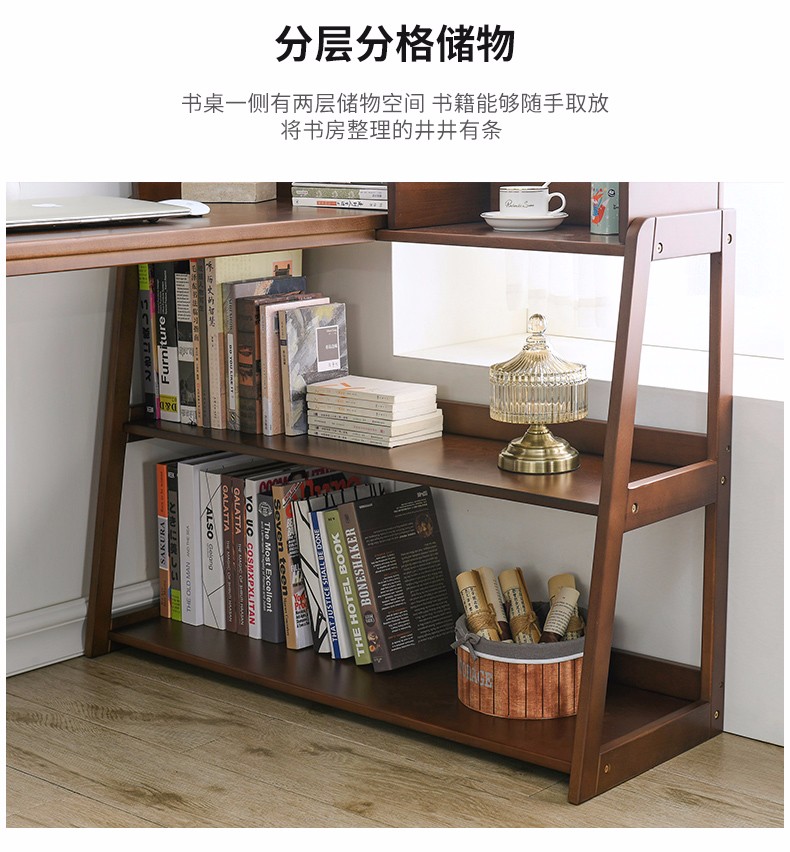商品名称:家逸实木书桌书架组合现代简约转角写字台办公桌家用学习桌电脑台式桌 胡桃色书桌