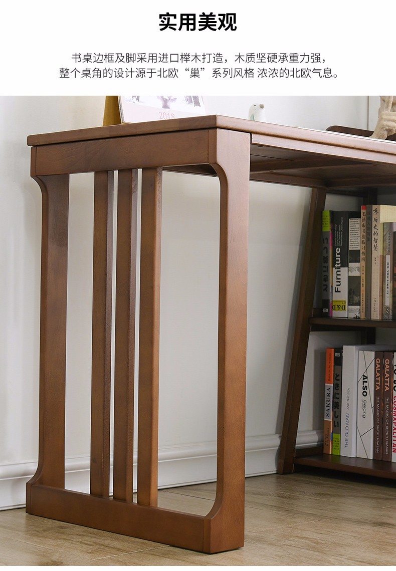 家逸实木书桌书架组合现代简约转角写字台办公桌家用学习桌电脑台式桌 胡桃色书桌