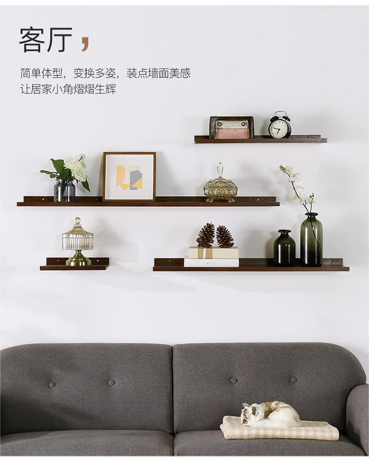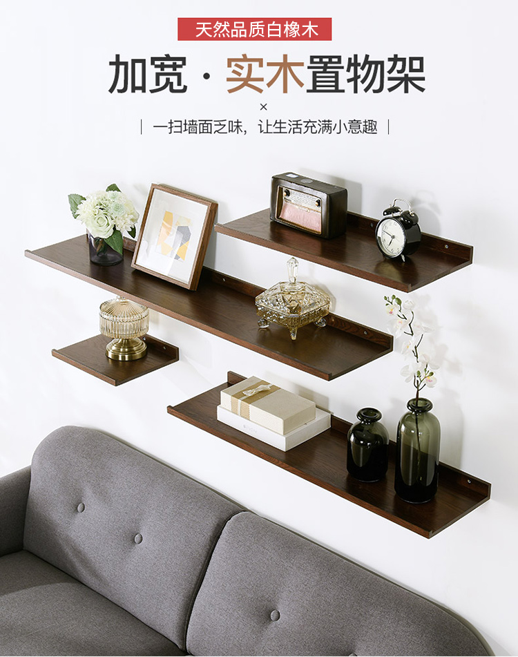 家逸 家逸 实木隔板墙上置物架电视墙搁板搁架墙壁书架沙发后储物架装饰架RF-GB549