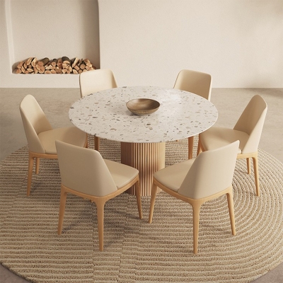 商品名称:法式奶油风圆形水磨石现代简约餐桌小户型家用6人实木餐桌椅组合