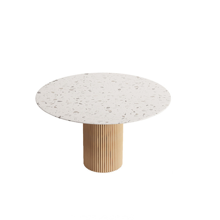 法式奶油风圆形水磨石现代简约餐桌小户型家用6人实木餐桌椅组合
