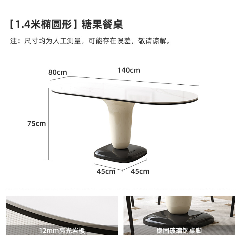 商品名称:法式奶油风餐桌椭圆形网红家用饭桌小户型岩板高级感ins风