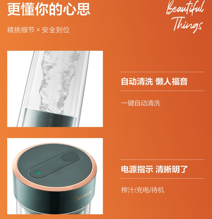商品名称:美的榨汁机小型便携式果汁杯电动家用多功能迷你充电式炸汁随行杯