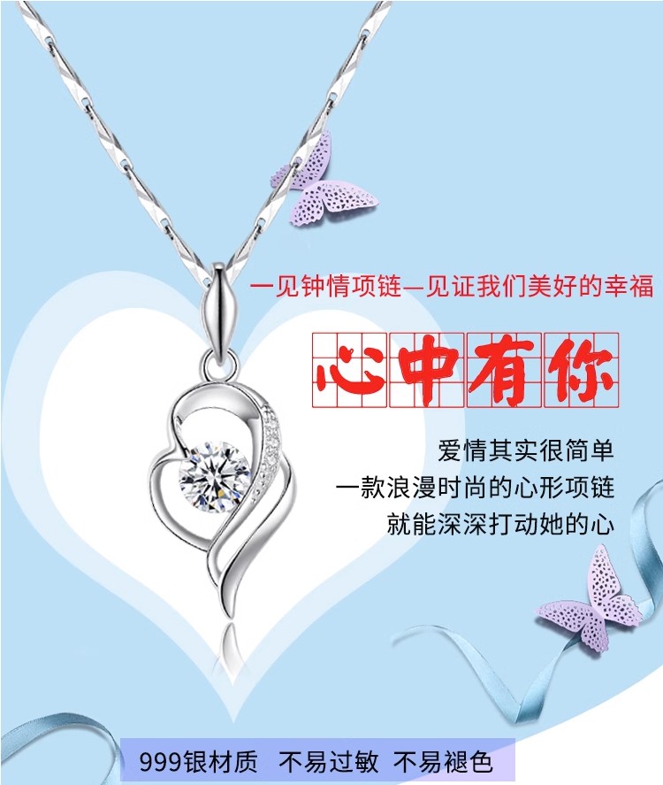 商品名称:999纯银项链女轻奢高级设计感心形吊坠锁骨链
