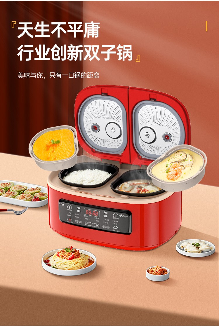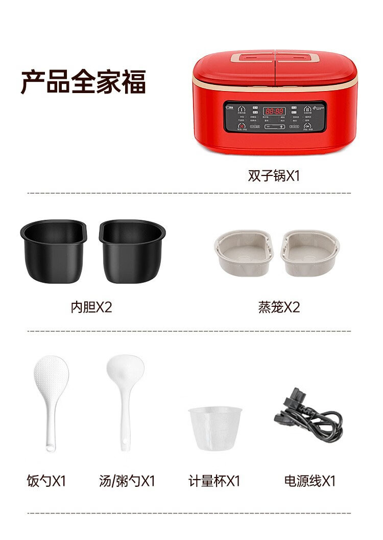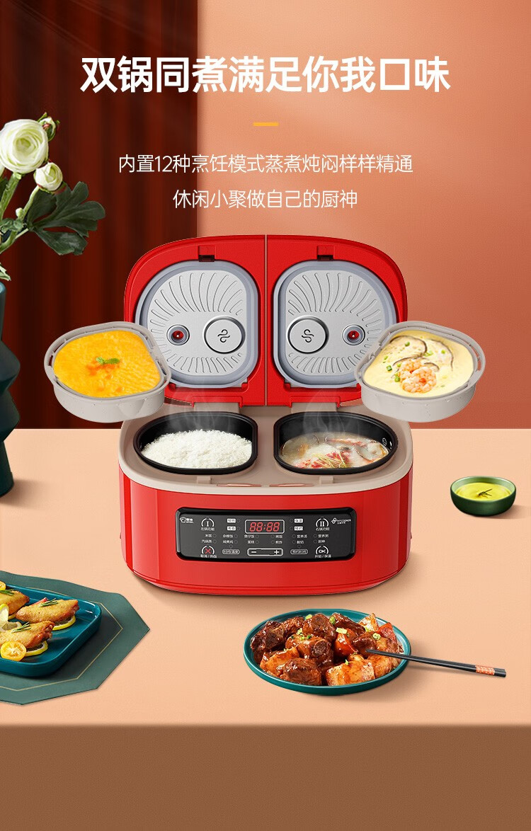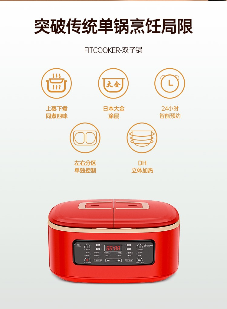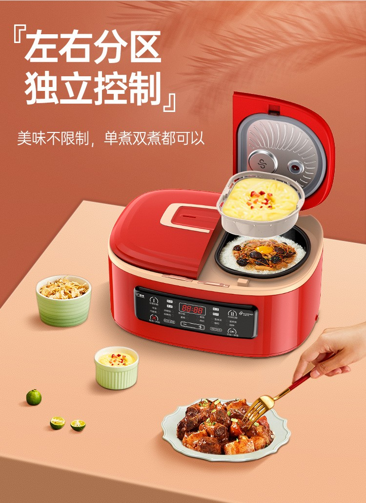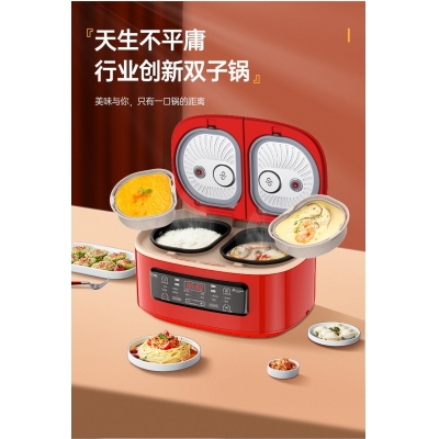 商品名称:非煮不可(Fitcooker) 迷你电饭煲智能小电饭锅双胆双开门多功能电饭锅双煮家用2-6人带蒸笼5升