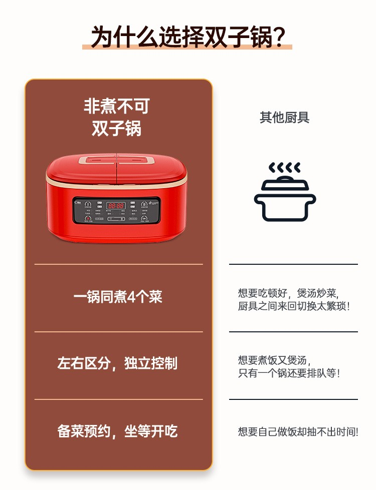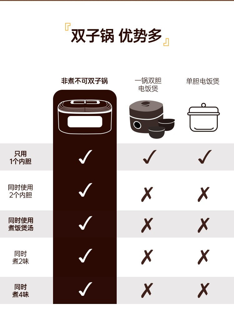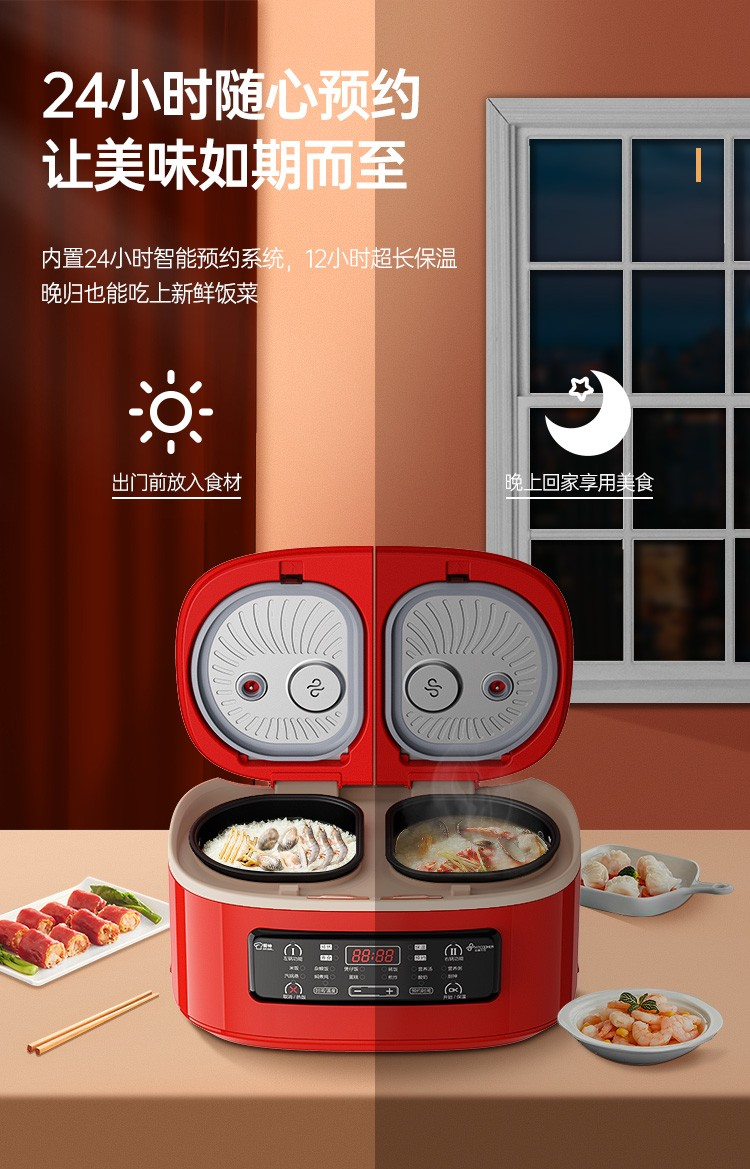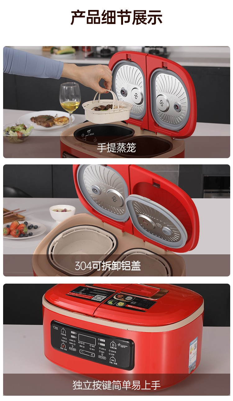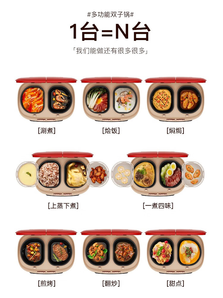 商品名称:非煮不可(Fitcooker) 迷你电饭煲智能小电饭锅双胆双开门多功能电饭锅双煮家用2-6人带蒸笼5升