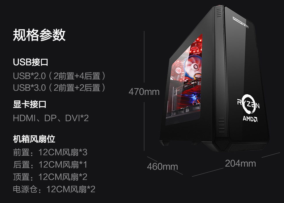 • 主板:M-ATX(紧凑型)A320 AMD芯片
