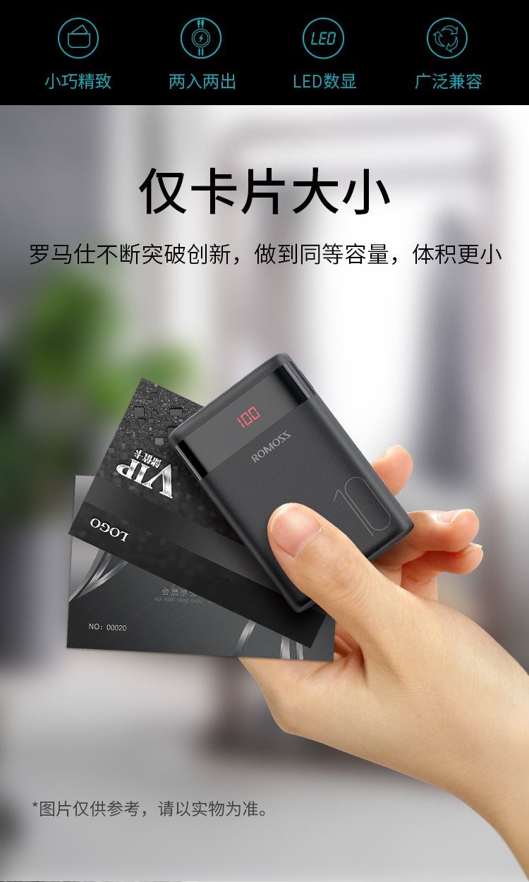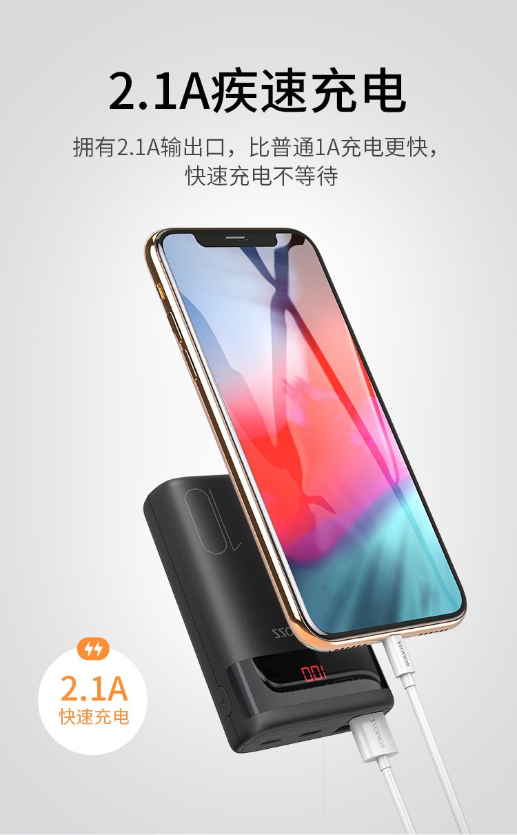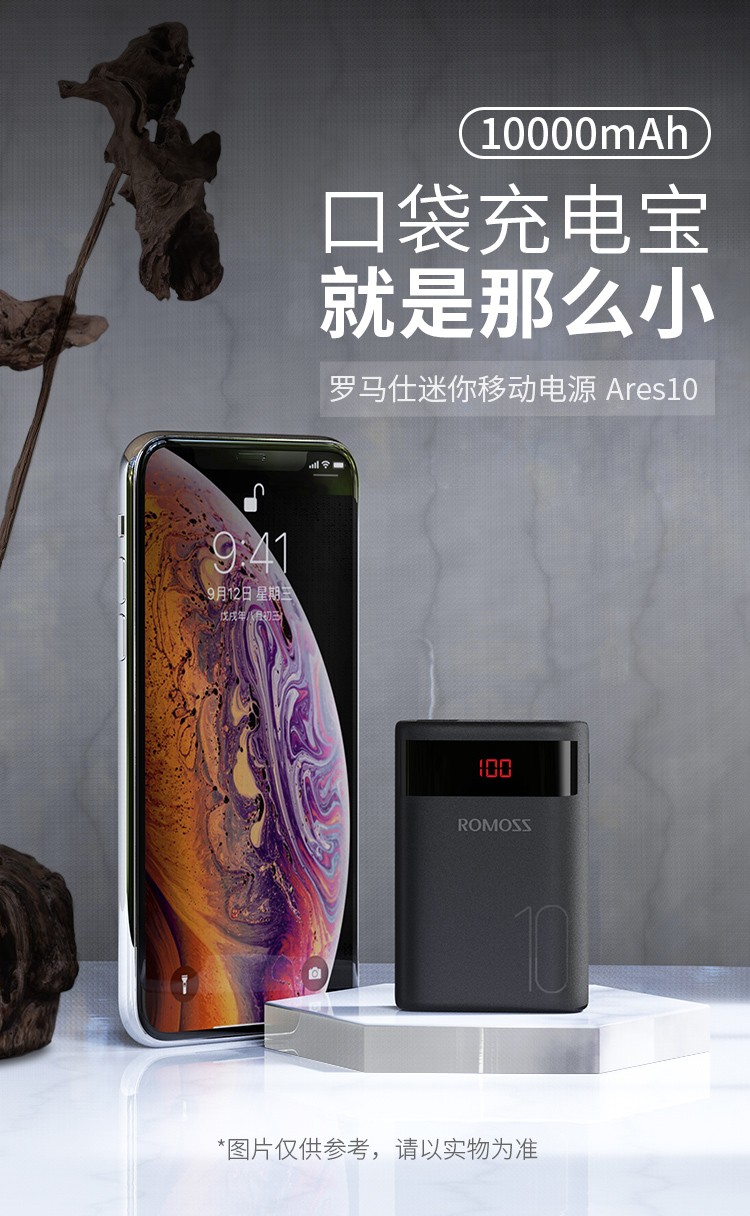 商品名称:罗马仕Ares10充电宝10000毫安移动电源超薄小巧迷你双USB输出智能数显苹果安卓Type-C 黑色