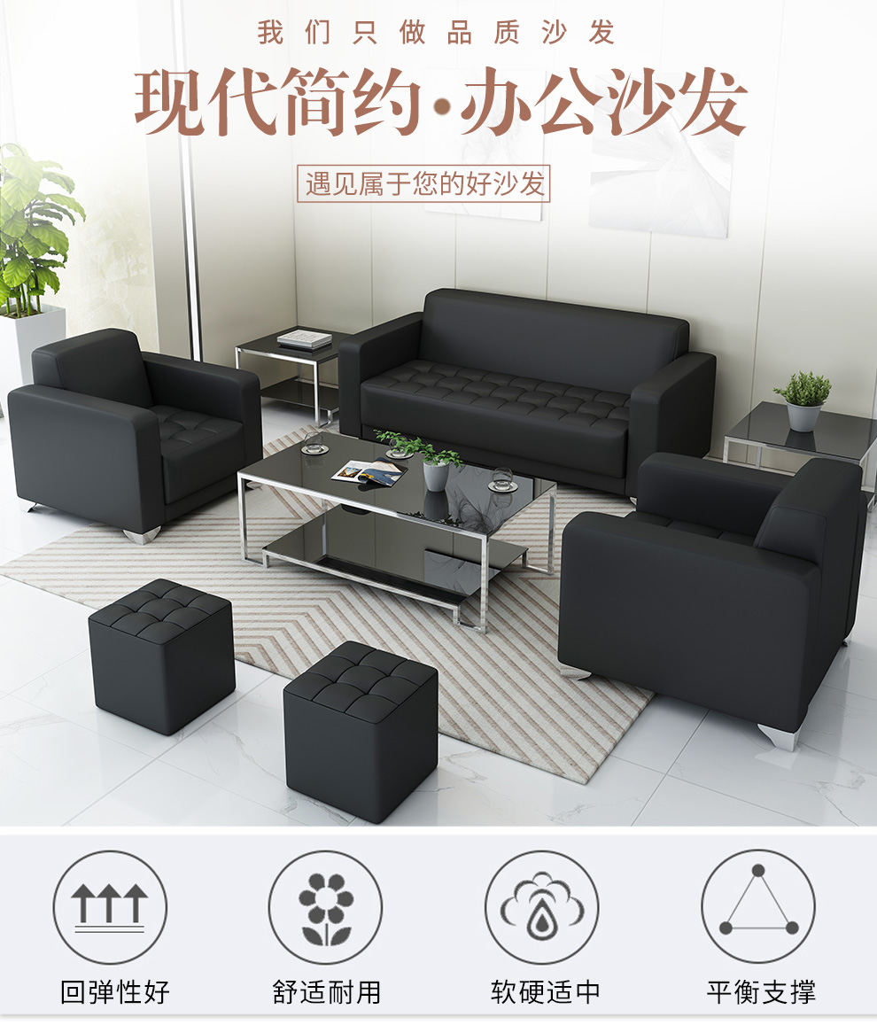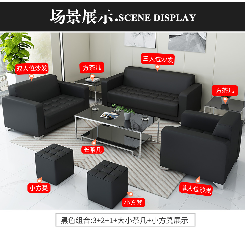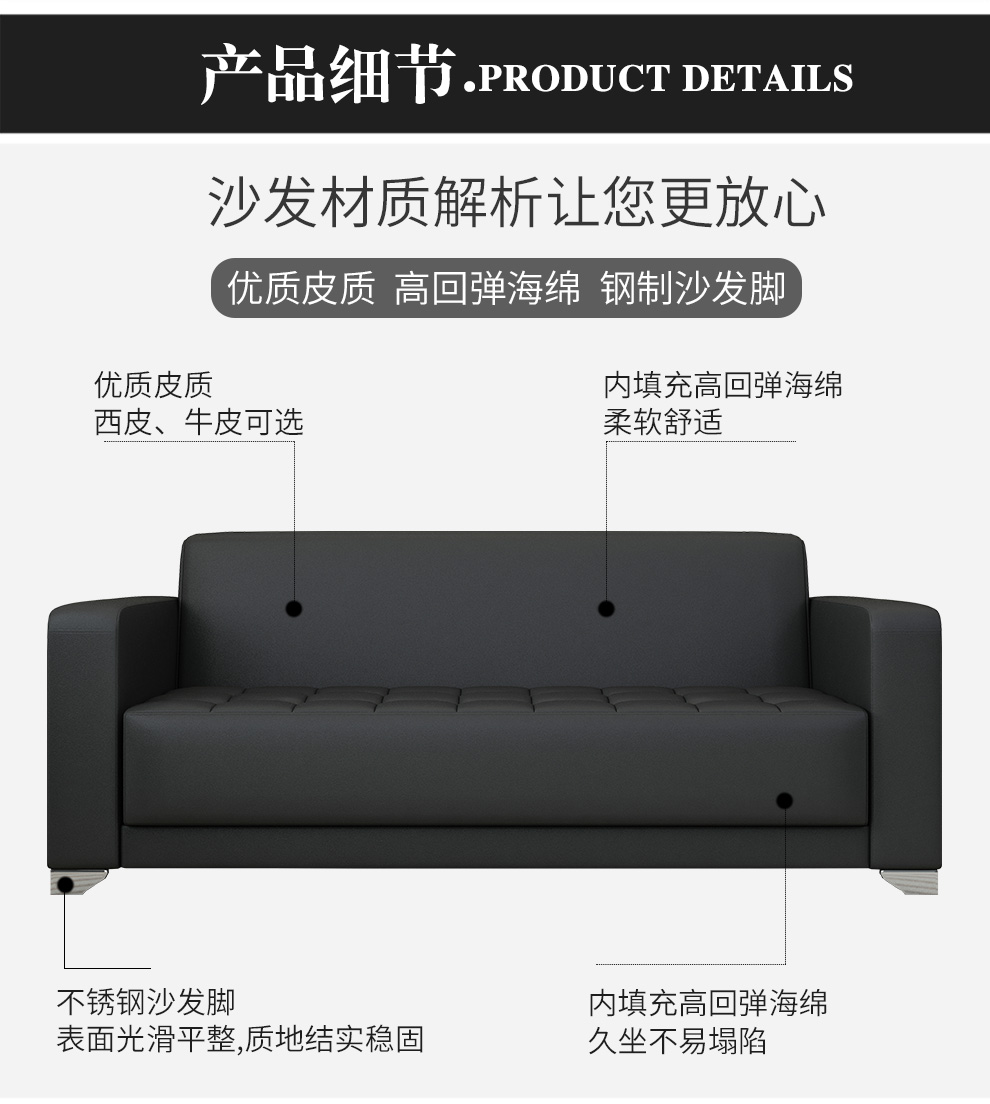 商品名称:隆旭 办公家具办公沙发茶几组合办公室简约会客接待沙发商务皮沙发 牛皮双人位 101
