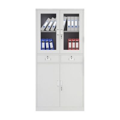 工来工往 文件柜铁皮柜子档案柜储物柜办公柜资料柜办公室带锁抽屉柜中二斗玻璃加厚凭证柜 中二斗文件柜