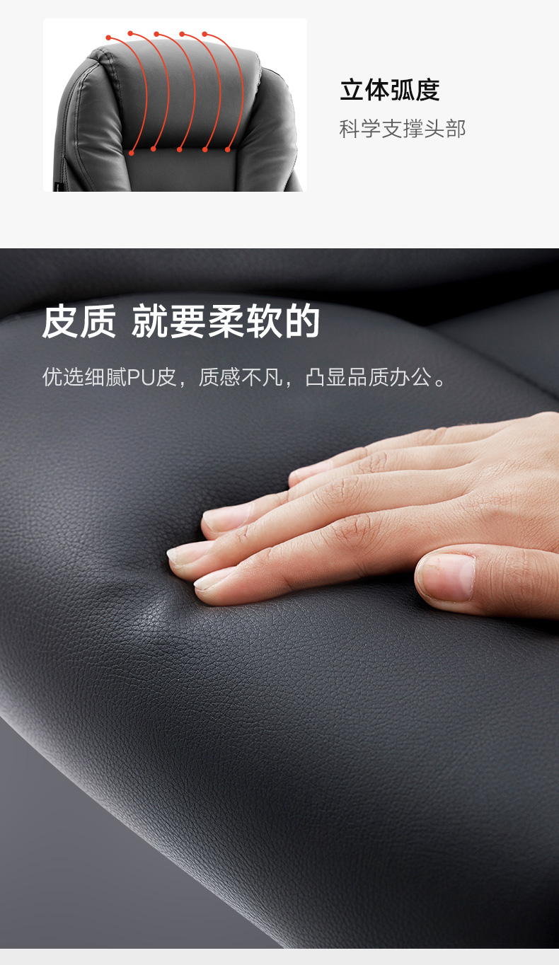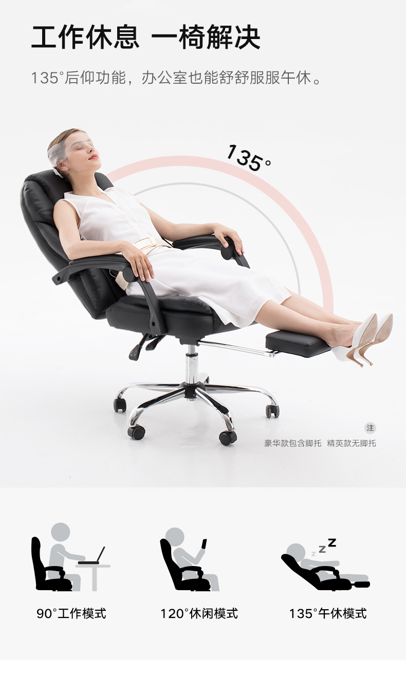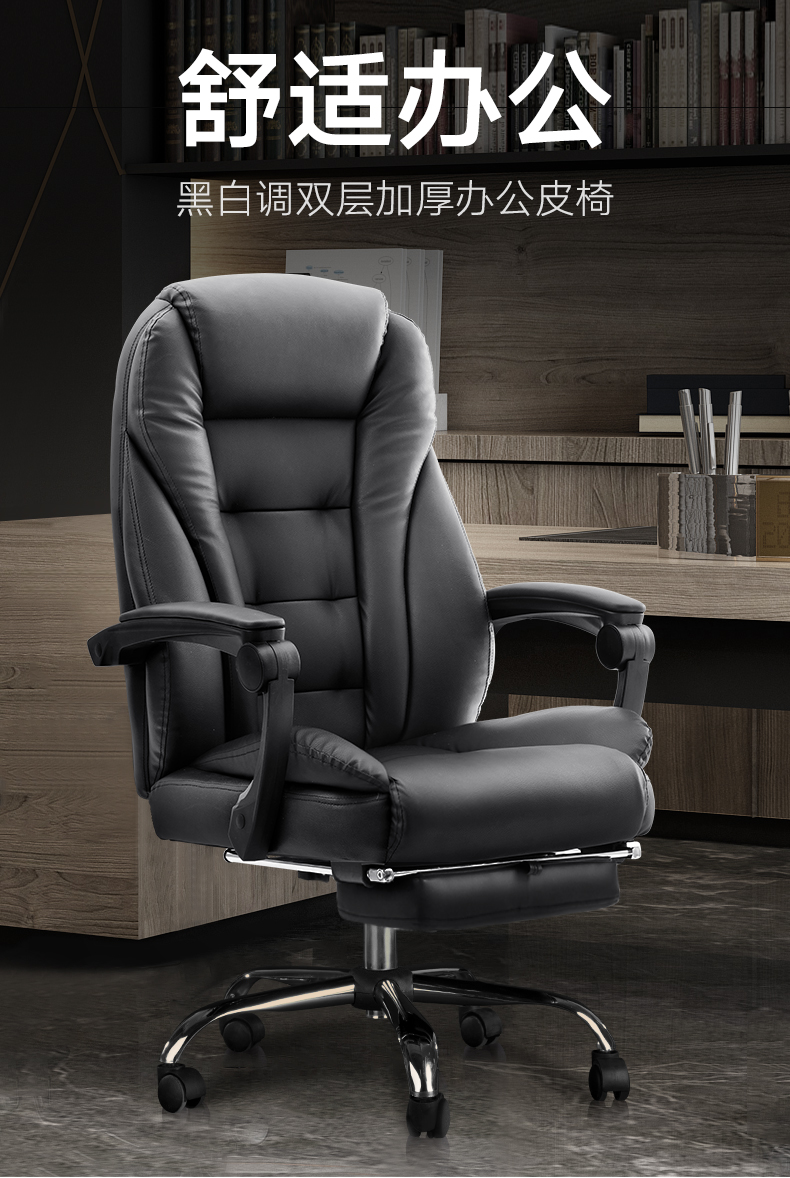 商品名称:黑白调(Hbada)电脑椅家用椅子老板椅皮椅可躺办公椅人体工学旋转座椅带脚托款 黑色脚托款
