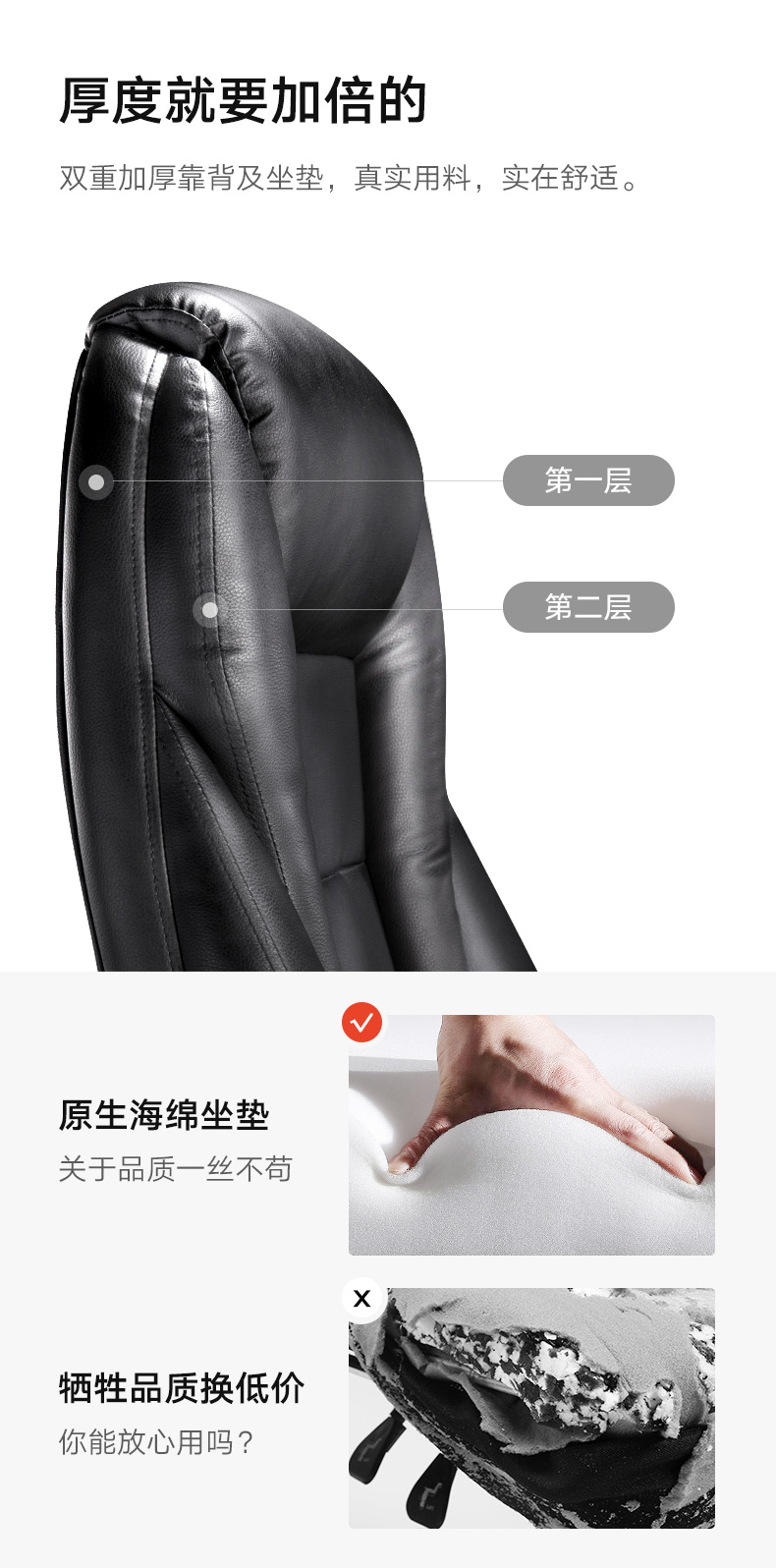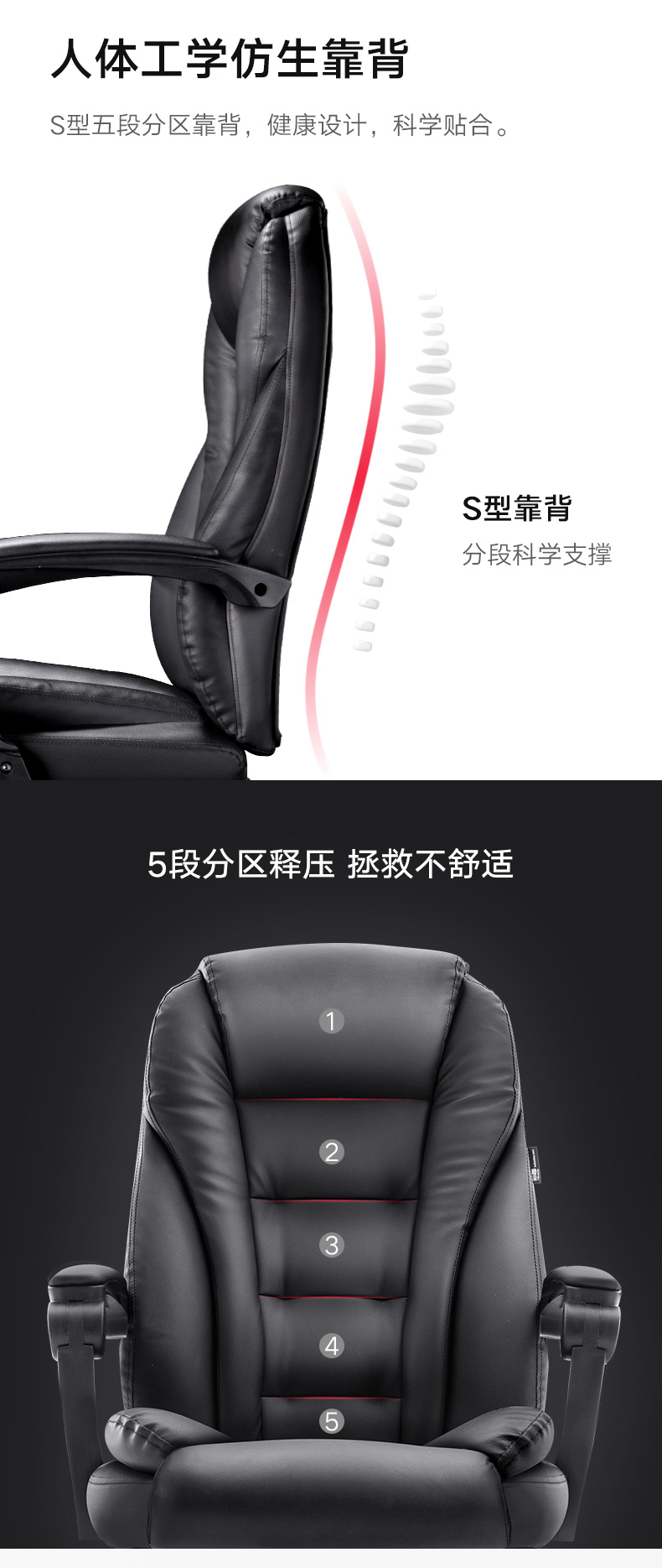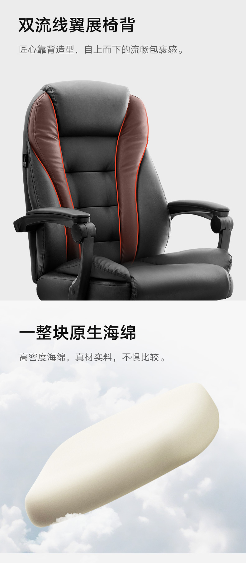 商品名称:黑白调(Hbada)电脑椅家用椅子老板椅皮椅可躺办公椅人体工学旋转座椅带脚托款 黑色脚托款