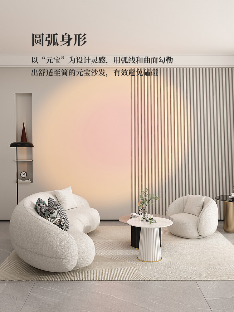 北欧羊羔绒弧形沙发美容院办公休闲接待小户型客厅沙发茶几组合