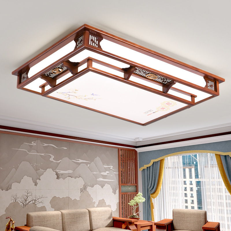 商品名称:新中式客厅灯吸顶灯led长方形大厅灯中国风仿古实木卧室灯具5211