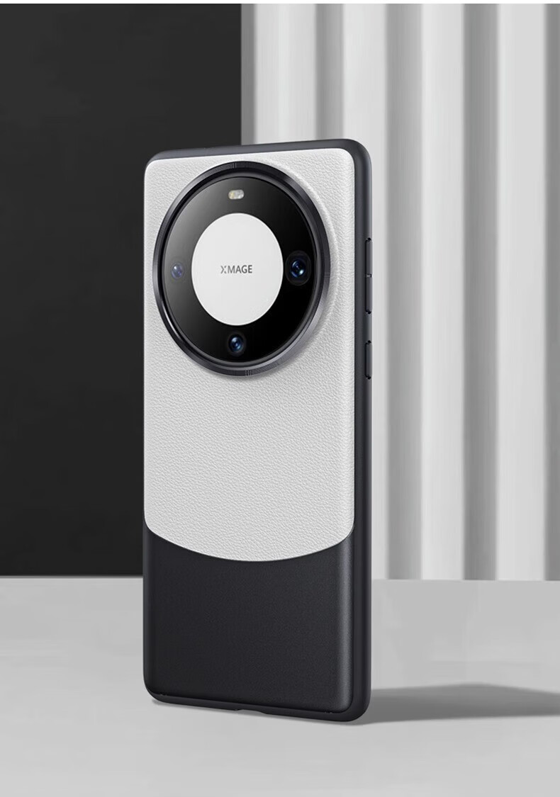 京工智造 华为mate60pro手机壳mate60全包防摔金属素皮拼接保护套熊猫 Mate60Pro【白沙银】贈水凝膜 +镜头膜 皮质金属拼接丨还原真机手感