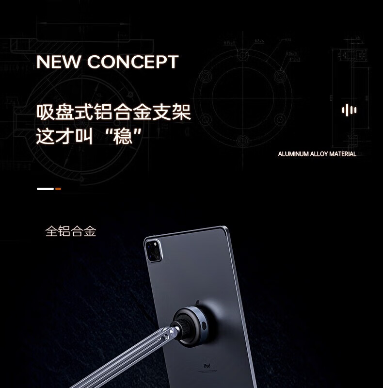 美杜 【真空吸铝合金】平板支架手机支架桌面万向调节ipad pro悬臂床头懒人支撑吃鸡追剧办公神器