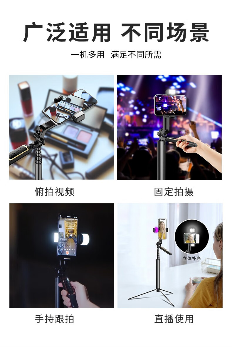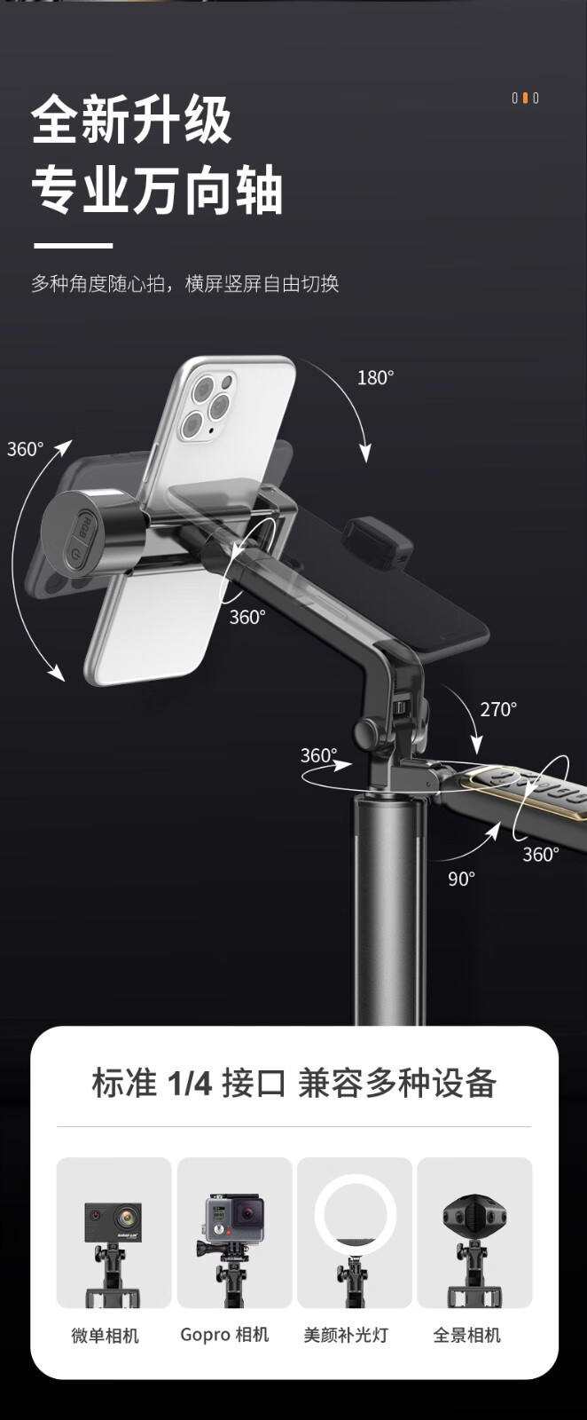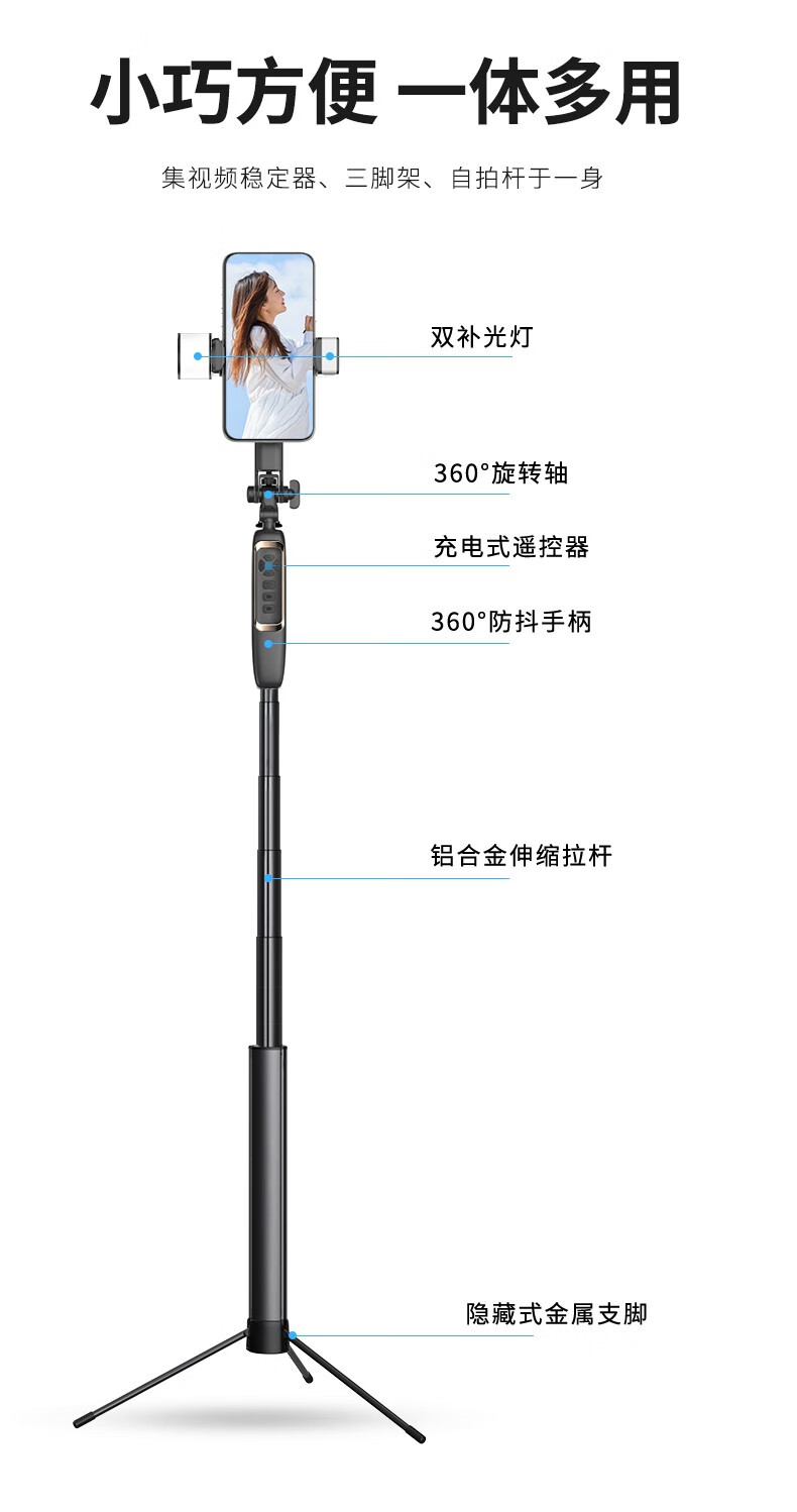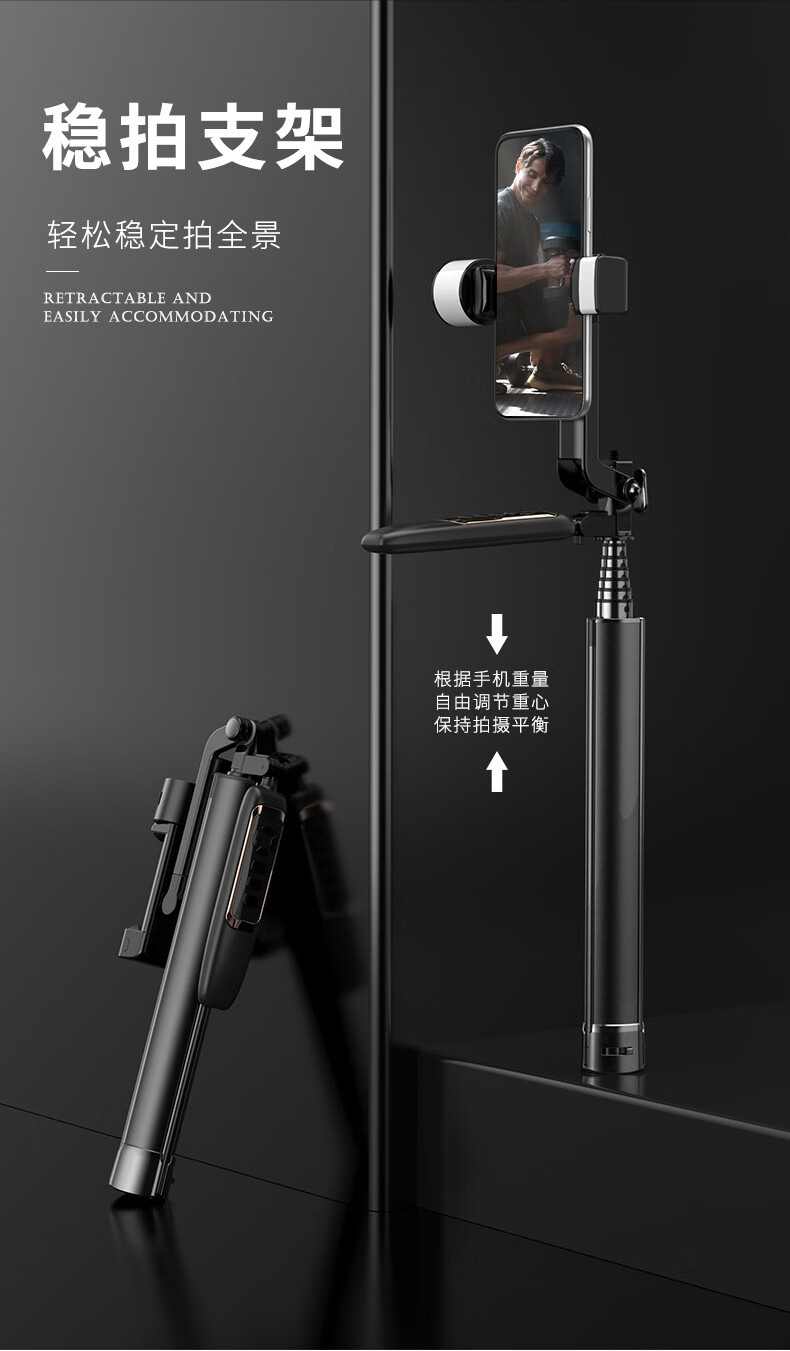 2023新款防抖手机自拍杆直播三脚架多功能通用美颜蓝牙遥控抖音通用手持稳定器360旋